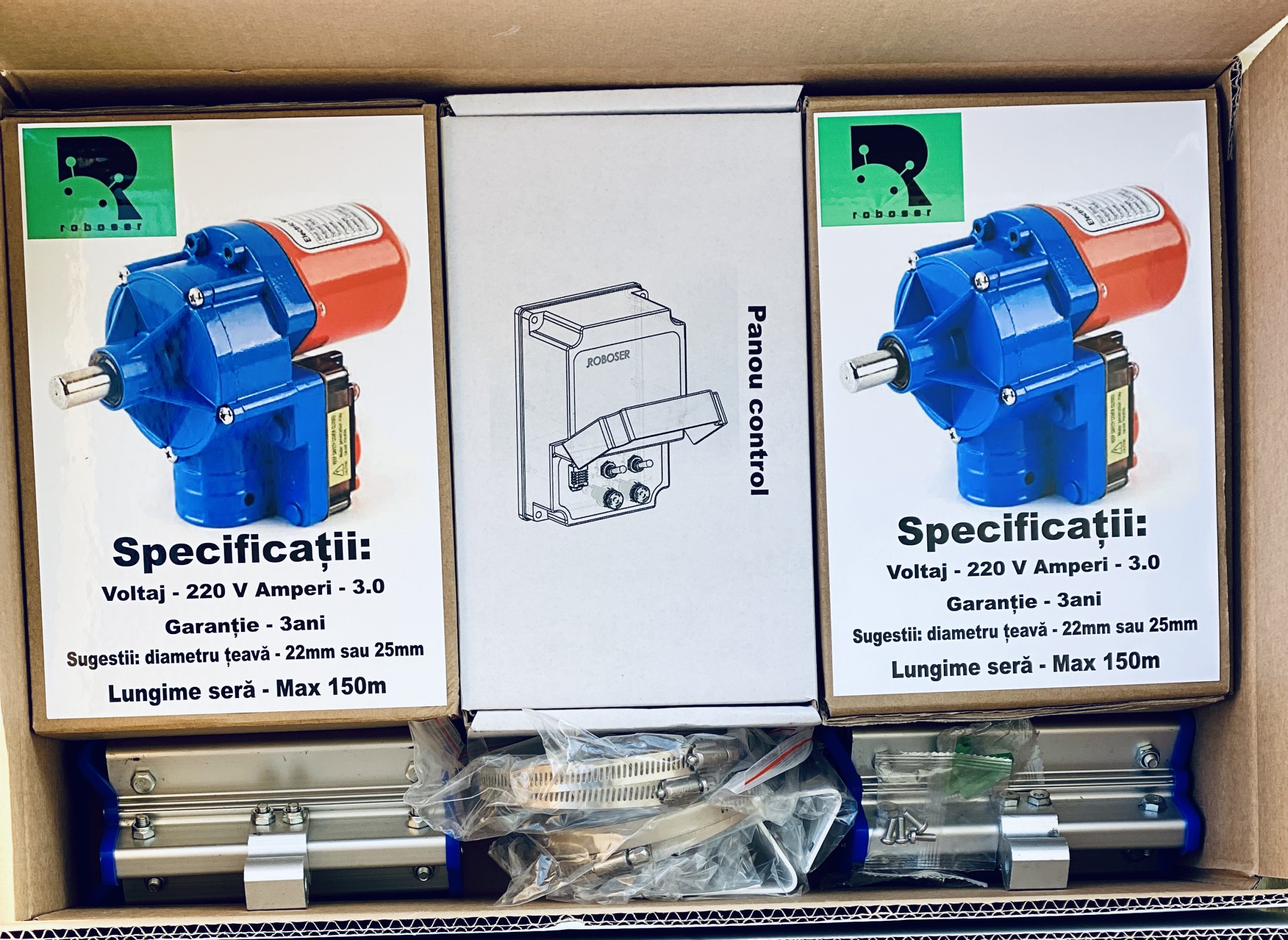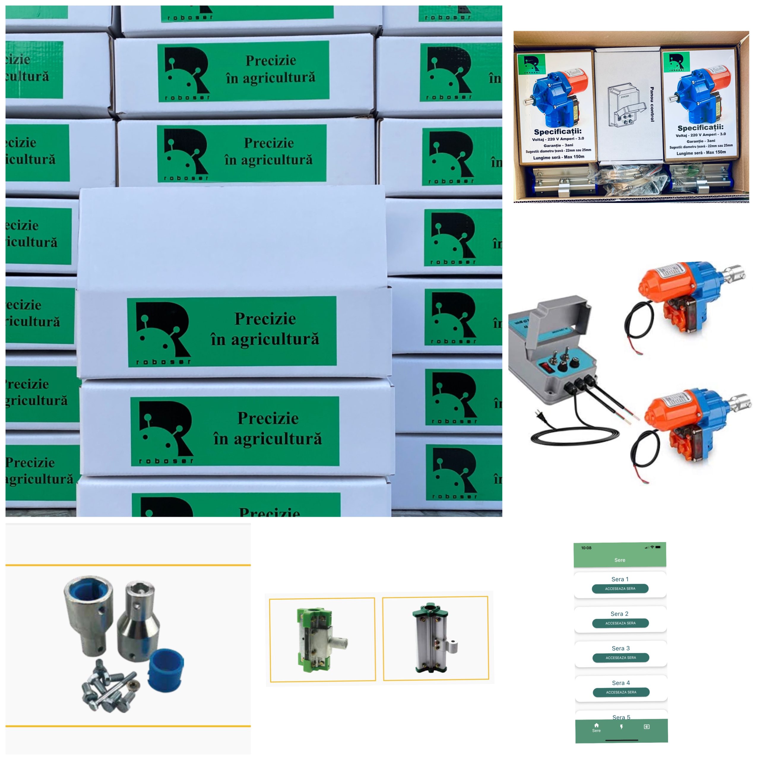 Înlocuim manivelele cu macarale electrice, controlate din telefon, din aplicatia mobila proprie, Roboser, sau actionate manual din Panoul de Control montat in sera.